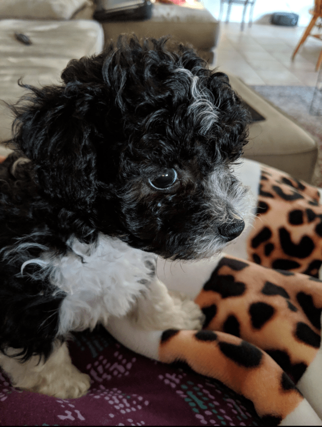 We had almost two years with a very difficult rescue dog, and then several months with Brenna as our only dog. Since Brenna is deaf, she couldn’t alert me to sounds or strangers around the house, and I kept thinking about how I’d like to have another dog. I really wanted a puppy, if possible, as we had such a hard time with our rescue dog and the issues he had from being in a rescue/shelter environment. Ideally, I wanted a dog that didn’t shed, even knowing that meant regular grooming. I wanted a dog that was fairly easily trained. And one of the most important traits I wanted was a good temperament, as we have the two young boys.
