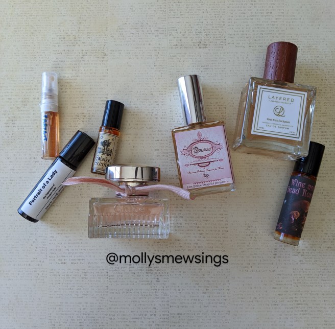 I think that’s pretty much all of my rose perfumes, so next week will be back to normal. It’s feeling very much like Spring around here, so I think I’ll migrate my Spring scents out and put the Winter ones in the cabinet.