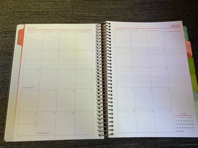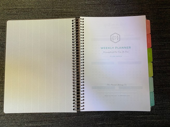With a Plum Paper Planner, you decide when you want it to start – my new one starts today, May 2020. You pick your planner size, cover design, customization (photo, name, quote, etc.) They have special designs and layouts for both teachers and students. I have the A5 planner (5.8″ x 8.3″) but they also have 7 x 9 and 8.5 x 11 sizes. You can choose horizontal or vertical weekly layouts, monthly layouts, daily layouts, and can have either the standard layout or customize certain headings and areas. You can order it with the spiral binding, or unpunched, so that you can punch it yourself and have it in a binder, or use the planner discs. When I punched my own planner a couple of years ago, I bought an Arc punch, but I don’t see those available on Amazon right now. I think this Happy Planner one is similar, though. You can choose anywhere between 12-18 months for the length of your planner. There are a ton of add-ons, and some you can choose to have dispersed throughout the months, or tabbed in their own section: meal planning, shopping lists, direct sales, fitness, lined/dotted/graph/blank pages, coloring and scrapbook pages. If you are more of a journal person, there are spiral notebooks that you can also personalize, as well as several types of ready-to-ship journals. There are many accessories: stickers, dashboards, folios, desk calendars, desk notepads for daily list makers.