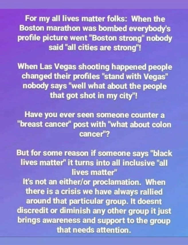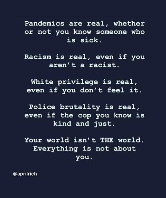 I will get back to posting soon, and hope everyone joins me in continuing to listen and learn, and find ways to help. Donate to worthy causes if you can. Read books to educate yourself. Share your new knowledge with others. Confront racism in your day-today life.